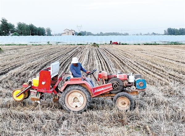 “三夏”生产攻坚战决胜时刻,郸城县尊重群众意愿、尊重科学规律,紧抓农时,统筹推进秋季作物趁墒抢种工作。目前,全县秋季作物种植已全面完成。记者 徐松 摄