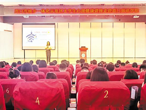 6月13日,由市城乡一体化示范区主办、周口精神康复医院承办的大学生心理健康讲座在周口师范学院举行。心理健康专家从健康的定义入手,通过有趣的心理测试,让大学生认识自身心理健康状况,了解如何进行自我心理疏导和压力释放,从而保持良好的心理状态。②18