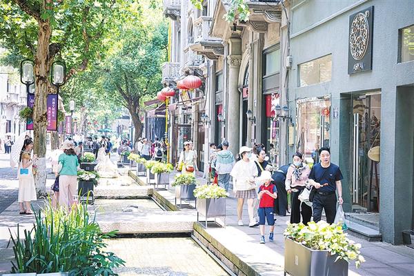 游客在南宋御街步行街游玩(6月10日摄)。