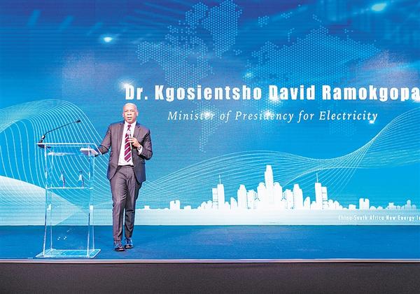 6月13日,在南非约翰内斯堡,南非总统府电力部长科西恩乔·拉莫科帕在中国-南非新能源投资合作大会上致辞。新华社记者 张誉东 摄
