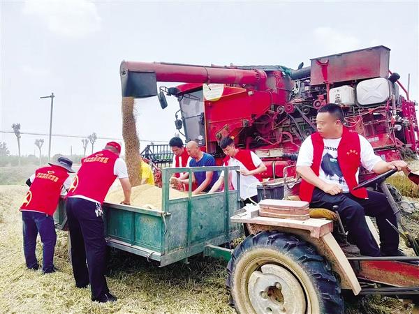 “三夏”期间,西华县大王庄乡党委组织志愿者深入田间地头,开展抢收抢种帮扶工作。记者 张猛 通讯员 杨云彤 摄