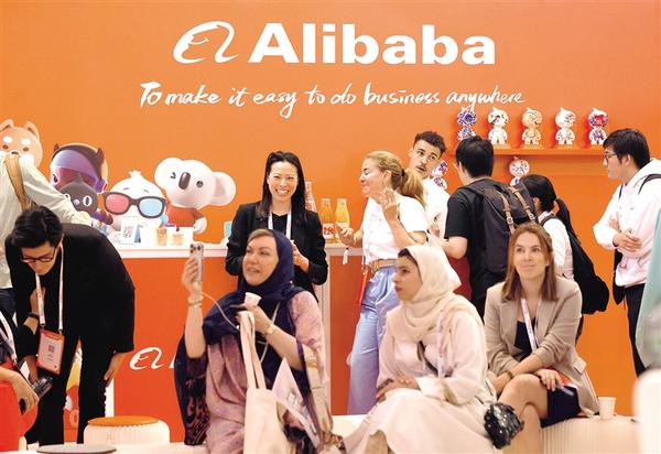 6月15日,在法国巴黎凡尔赛门展览中心,人们在“科技万岁”科技创新展上的阿里巴巴展台参观。 法国“科技万岁”科技创新展6月14日至17日在巴黎举行。该展会创立于2016年,今年展会共吸引来自全球的2500多家初创科技企业参展。 新华社记者 高静 摄