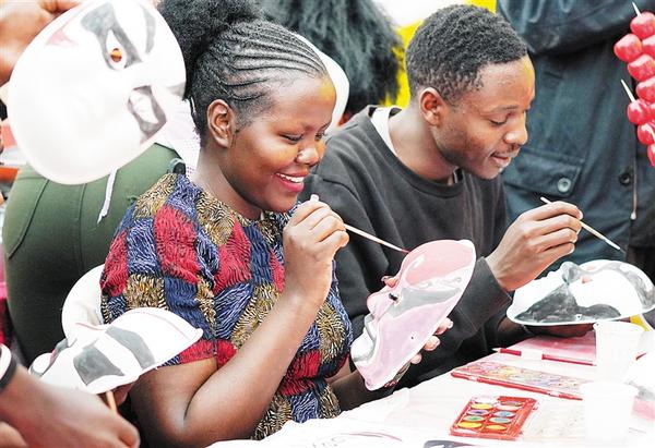 6月17日,在肯尼亚内罗毕,人们在内罗毕国际文化节的中国展位体验京剧脸谱绘画。第八届内罗毕国际文化节17日在位于肯尼亚首都内罗毕的肯尼亚国家博物馆内举行,活动展示了来自不同国家的美食、音乐、舞蹈、服饰和手工艺等,吸引众多民众和游客前来参观体验。新华社记者 韩旭 摄