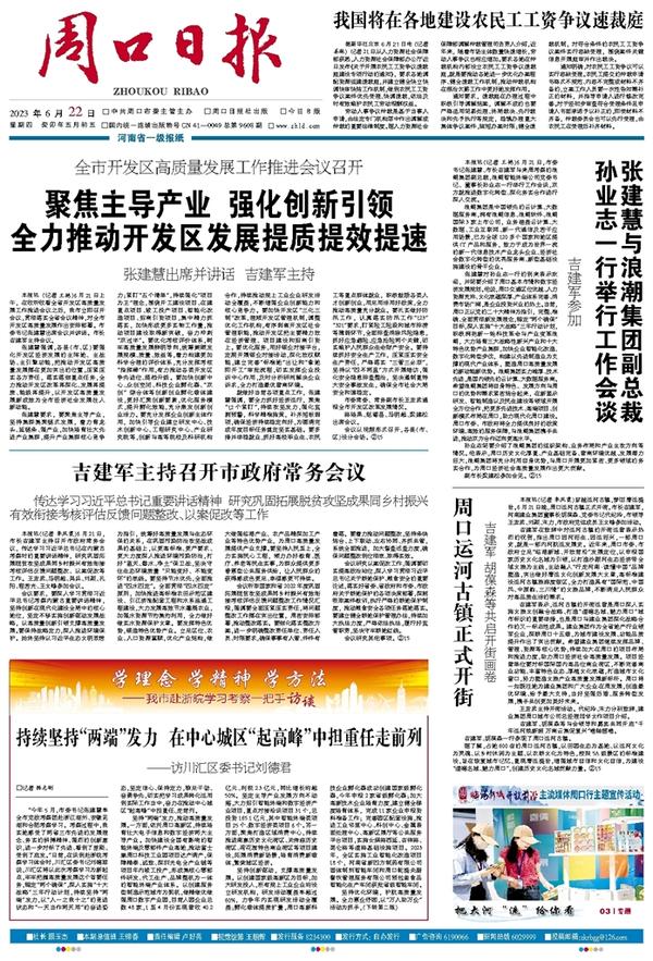 坚持“两端”发力,推动高质量发展。一方面,依托周口高新区,持续培育壮大电子信息和数字经济两大主导产业。加快建设全国有影响的智能终端及零部件产业高地,推动富士康周口科技工业园项目达产满产,保障精泰、远致、深圳光电全产业链等项目年内竣工投产,形成集核心零部件研发、代工生产、品牌整机为一体的智能终端产业体系。以创建服务型制造示范城市为契机,做精做优做强周口数字产业园,目前入园企业总数48家,1至4月份实现营收40.2亿元、利税2.3亿元,同比增长均超50%。坚定主导产业发展方向不动摇,大力招引智能终端和数字经济产业项目,重点对接洽谈项目31个,总投资165.1亿元,其中智能终端类项目25个、数字经济类项目6个。另一方面,聚焦打造区域消费中心,持续推进南寨历史文化街区、关帝庙历史街区、荷花渡特色商业街区等项目建设,拓展消费新场景,培育消费新载体,繁荣城区经济。