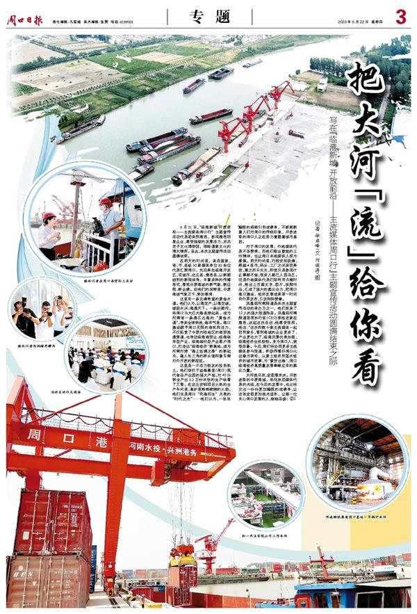 凤凰网河南频道是本次主题宣传活动的承办方之一,他们派来了12人的强大报道阵容。凤凰网河南频道首席执行官(CEO)李彬老家在鹿邑,谈起这次活动,他感受很深。他说:“这次和数十家主流媒体一起回到家乡,看到港城的企业更多了、产业更壮大了,临港风景优美如画,临港经济生机勃勃。身为周口人,我很自豪。今后,我们将协同更多主流媒体参与报道,积极传播好周口化边缘为前沿,从黄土经济到蓝水经济的城市故事,为‘豫货出海’、周口临港经济高质量发展奉献应有的舆论力量。”