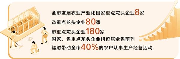 “全市现有省级农业产业化集群 18家、市级农业产业化集群24家, 其中产值超50亿元的1家,参与其中的各类农业产业化组织2000多家,辐射带动农户35 万户。”市农业农村局乡村产业发展科科长潘忠说,“农业产业化集群发展已成为农业强市的重要抓手。”