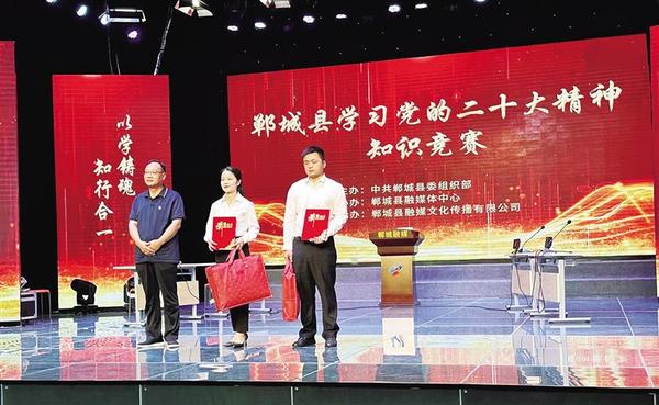6月18日上午,郸城县学习党的二十大精神知识竞赛举行决赛,郸城县卫健委获得优秀组织奖,来自县第一医健集团总医院的王珍获一等奖、候艳伟获二等奖、杨梅花获三等奖、刘娟娟获优秀奖,来自县第三医健集团总医院的王简获优秀奖。 记者 徐松 通讯员 侯同廷 摄