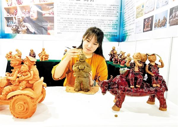 6月30日上午,首届中国民间艺人交流大会在浙江省衢州市文化艺术中心开幕。省级非物质文化遗产“郸城泥塑”第六代传承人张玉萍应邀携16件泥塑作品(包括丹钧瓷泥塑8件、原生态泥人8件)参加大会。张玉萍现场即兴创作的泥塑作品《衢州娃》,受到观众一致称赞。