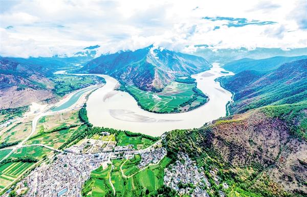 长江在云南省丽江石鼓镇突然以急转弯转向东北,形成“V”字形的大转弯。万里长征在当地留下了红色精神财富;几代人不懈努力在沿江种植柳树;滇中引水工程正在火热建设中……多彩江湾边,石鼓镇欣欣向荣。