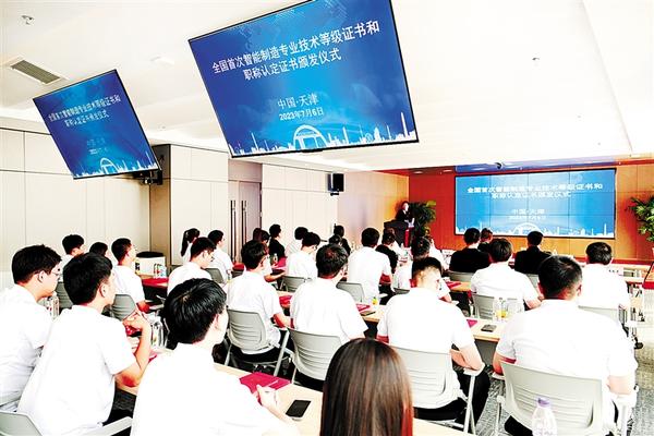 7月6日,天津举行全国首批智能制造专业技术等级证书颁发仪式。该证书由中国机械工程学会颁发,职业名称为智能制造工程技术人员,职业方向是智能装备与产线应用。