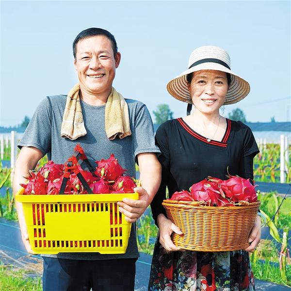 为鼓励村民开展特色种植,刘秀英夫妇决定前期由果园免费提供种苗和技术指导,待村民受益后再收取种苗费用。目前,梦里田园农牧专业合作社已经扩大到260亩,其中火龙果种植面积100多亩,有“软枝大红”“蜜炫龙”“水晶双色果”等6个品种,产品销往北京、上海、广州等地,年收入可达200多万元,带动周边群众60余人脱贫致富。
