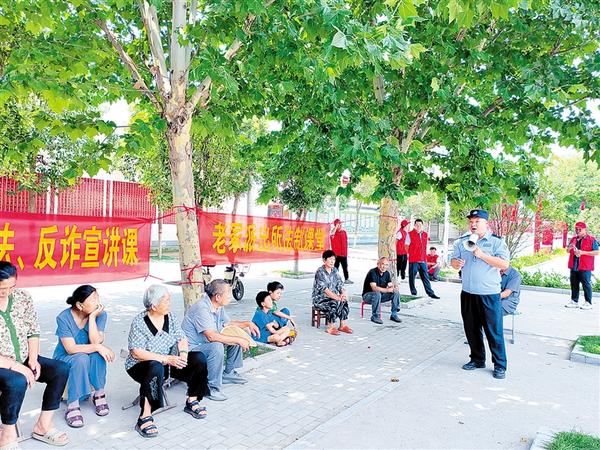 为进一步降低辖区诈骗案件发案率,守住辖区群众的“钱袋子”,营造和谐稳定的社会秩序,全面提升群众的识骗、防骗能力,近日,太康县老冢镇组织镇村干部、民警及志愿者在刘寨村文化广场开展反电信诈骗宣传活动,为群众宣讲电信诈骗的种类、惯用手段及防范常识。图为活动现场。