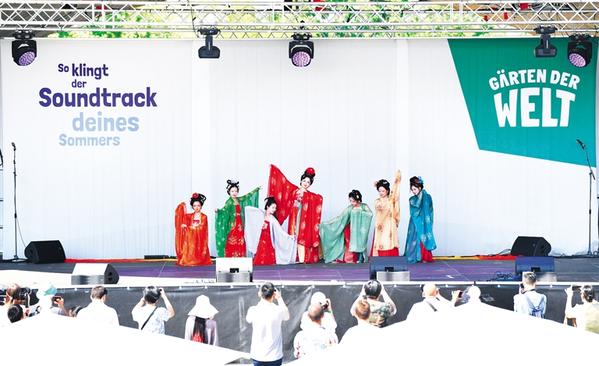 7月8日,在德国柏林世界公园,汉服爱好者进行汉服展示。7月8日至9日,位于德国首都柏林东部的世界公园举行以“文化遇见园林”为主题的文化节。