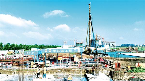 今年以来,郸城县认真学习贯彻党的二十大精神、全国两会精神和省市决策部署,以河南周口国家农高区建设为引领,坚持“项目为王”理念,以“三个一批”为主战场,以项目建设为高质量发展赋能增势,坚决确保“全年红”。 图为郸城县千喜鹤乡村振兴智慧农业产业园项目建设工地。记者 徐松 摄