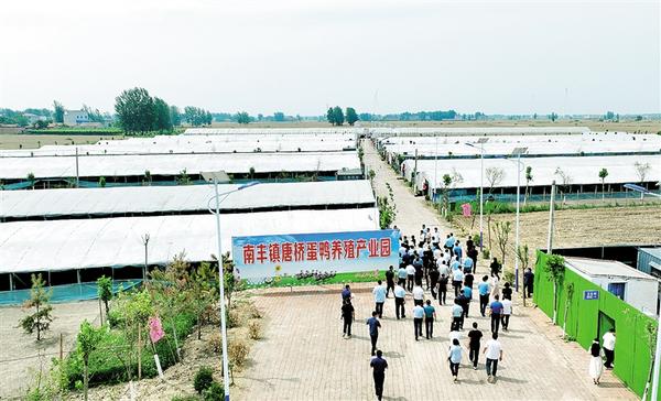 做强品牌经济。按照“一村一品”发展思路,充分依托省级老字号“唐桥鸭蛋”品牌优势,引进“青年鸭”种鸭养殖产业项目,高标准打造南丰镇唐桥蛋鸭养殖产业园(如图)。该项目总占地150余亩,总体建造40个鸭棚。目前,已建成鸭棚17个,购买鸭苗10万只,吸纳防止返贫监测对象40人就业,每人每月工资3000元以上。