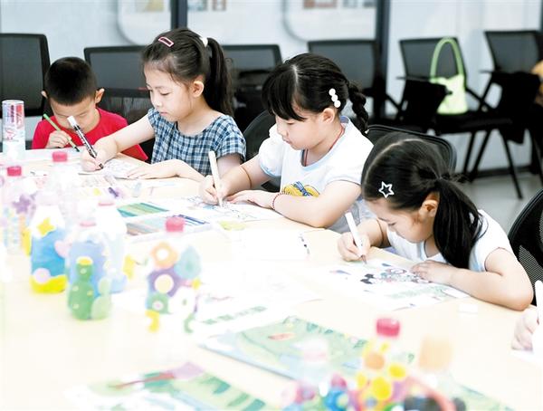 7月11日,小朋友们在浙江省湖州市吴兴区龙泉街道祥和社区参加低碳主题绘画活动。 在“全国低碳日”来临之际,浙江省湖州市吴兴区龙泉街道在多个社区组织开展了形式多样、内容丰富的低碳环保系列宣传活动,并发起争做“绿色生活、绿色出行、绿色消费”低碳践行者的倡议,倡导绿色低碳生活新风尚。 新华社记者 徐昱 摄