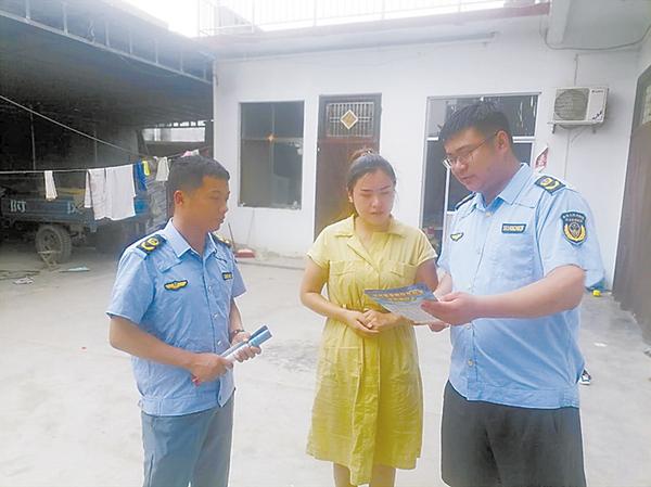 近日,沈丘县应急管理局驻村工作队深入沈丘县邢庄镇秦庄寨行政村和宋庄行政村宣传防灾减灾和安全生产知识。图为驻村工作队员深入村民家中,宣讲防灾减灾知识和安全生产知识,向村民发放宣传资料。 程昆 摄