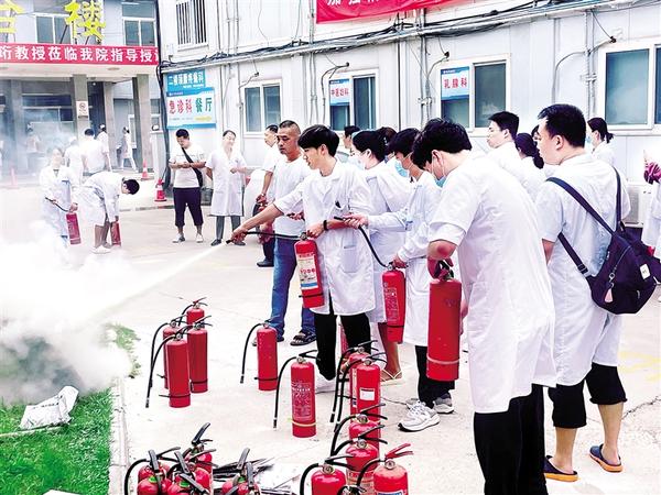 为增强医护人员的消防安全意识,有效提升他们防范和应急处置消防安全事故、紧急扑救火灾的能力,创建平安、和谐的医疗环境,7月10日,周口市人民医院开展全员消防安全应急演练,现场讲解、演示灭火器的使用方法,并针对重点岗位人员进行专项培训。全院职工分批按照灭火器的使用方法逐个操作,对模拟火源进行灭火。