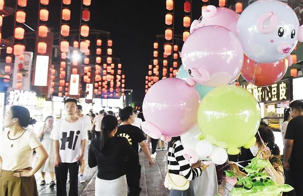 这是7月11日晚拍摄的洛阳十字街小吃一条街夜景。