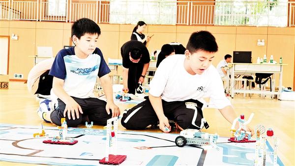 日前,项城市2023年夏季学生信息素养校际交流赛在政和路小学举行,旨在引导学生开展基于多学科、创新性的探索实践活动,在创造、分享过程中锻炼实践能力,培养探索精神。图为该校两名学生正在进行日常训练。 记者 张志新 摄