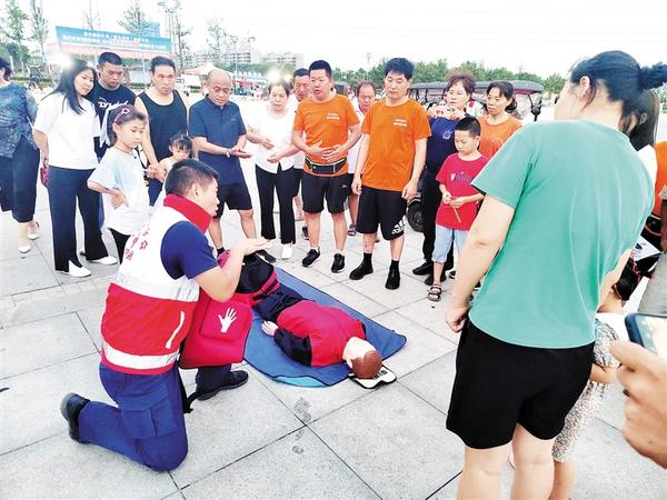 夏季是溺水事件高发期,为减少溺水事故的发生,广泛普及应急救护知识,增强群众生命健康安全意识和自救互救能力。7月15日晚,商水县红十字会在县市民广场开展“急救地摊送技能”暨“预防溺水 救在身边”应急救护知识科普活动。图为县红十字会自愿者正在为群众讲解救护知识。②16
