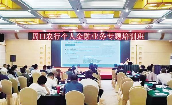 7月12日,农行周口分行举办2023年个人金融业务专题培训班,总行、省行和银创咨询公司的专家受邀到场授课。培训班对全市农行营业网点主任进行业务培训,旨在提高员工的专业素养、职业操守、理论水平和专业技能,更好地为广大客户提供优质、快捷的金融服务,为推动全行业务稳健发展打下坚实基础。王卫华 石艳青 摄