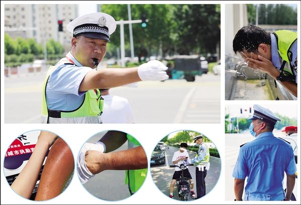 炎炎夏日,热浪滚滚。近日,我市持续开启“烧烤模式”,周口市公安局交通警察支队民警不惧酷暑、迎战热浪,维护着大街小巷的安全和畅通。 记者 任富强 通讯员 何光辉 摄