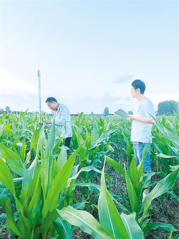 在田间,技术人员详细调查农作物长势、墒情及病虫害情况,测量和记录农作物的密度、高度等,与农户交流近期田间管理相关问题,并将气象服务送至田间地头。