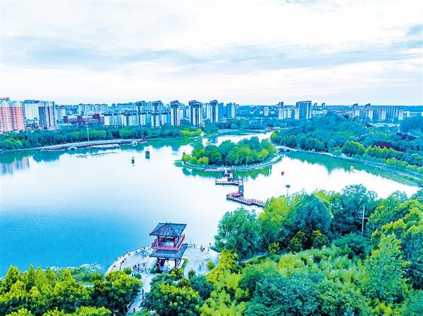 炎炎夏日,鹿邑上清湖公园草木青青、绿荫蔽日、湖水荡漾,成为群众的纳凉游玩好去处。记者 侯国防 通讯员 厉佳 摄