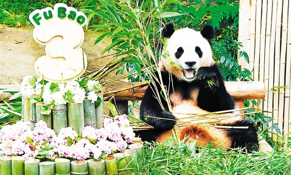 7月20日,在位于韩国京畿道龙仁市的爱宝乐园,大熊猫“福宝”享用竹子。当日,在韩国出生的大熊猫“福宝”迎来3岁生日,园区制作了由竹子和胡萝卜组成的“蛋糕”为其庆生。新华社/纽西斯通讯社