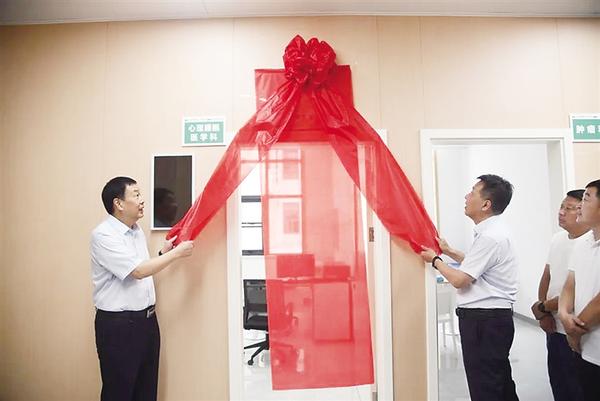 本报讯 (记者 徐松 通讯员 李涛文/图) 7月20日上午,由郸城县总工会牵头成立的全县第一家职工婚姻心理关爱诊所,在郸城县人民医院新城院区心理睡眠医学科正式开诊。县政协副主席、县卫健委主任于健和县总工会党组书记、主席王辉为诊所揭牌(如图)。县总工会兼职副主席、县卫健委副科级干部王晓琳主持揭牌仪式。