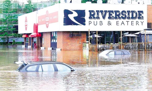 这是7月22日在加拿大新斯科舍省贝德福德拍摄的几乎被洪水淹没的汽车。加拿大东部新斯科舍省近日遭遇暴风雨天气,强降雨引发洪水,造成4人失踪。该省政府22日宣布全省进入紧急状态。 新斯科舍省政府供图(新华社发)