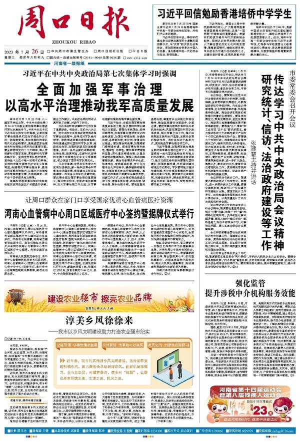 会议指出,要深刻认识党中央对当前经济形势的分析判断,完整、准确、全面贯彻新发展理念,不断推动经济运行持续好转、内生动力持续增强、社会预期持续改善、风险隐患持续化解,推动经济实现质的有效提升和量的合理增长。要保持发展定力,聚焦发展目标,坚定发展信心,推动周口高质量跨越发展不断取得新成效。要围绕“五个清单”和工业项目“五个五”要求抓落实,着力推动形成三大战略性新兴产业和十个百亿级特色优势产业;要围绕七个专项行动,持续推进农业强市建设工作,确保农民收入持续增长,努力实现农业强、农村美、农民富;要坚定不移推动现代物流体系建设,实现物畅其流、提振消费、拉动增长;要打好产业发展、功能完善、要素聚集组合拳,进一步扩大就业,集聚人才,激发动力活力;要做好保交楼稳民生工作,更好满足居民刚性和改善性住房需求,促进房地产市场平稳健康发展。