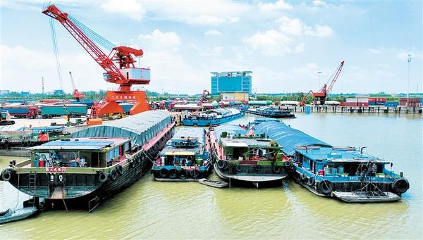 入夏以来,周口中心港码头迎来货运高峰期,每天都有大量的粮食、建材、化工原料等大宗货物进出港口。图为货船停靠在5号港池。