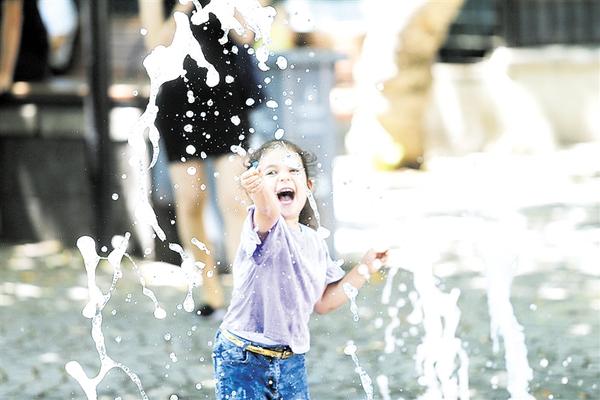 7月23日,儿童在土耳其安卡拉一处喷泉玩水。