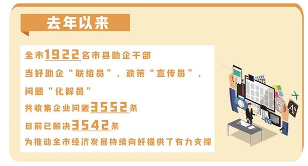 2023年,全市“万人助万企”活动聚焦发展培育重点产业链群,围绕培育壮大三大战略性新兴产业和十大特色优势产业,攻难点、通堵点、除痛点,抓实抓好10项助企专项活动,聚力打造一流生态。