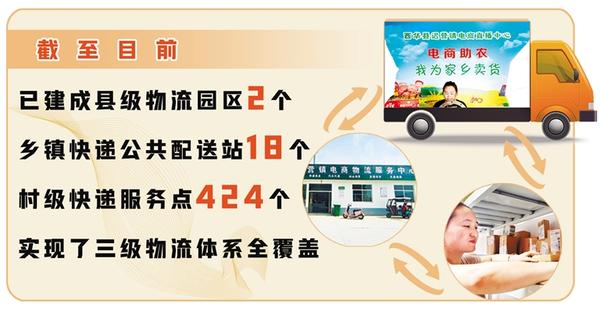 据介绍,农村物流和电商快递依托该县电子商务进农村综合示范县创建工作,在建立县级配送中心、设立镇(村)电商服务站点的同时,成立了电子商务进农村物流车队,整合了中通、韵达、圆通、极兔等多家快递公司实行共同配送,实现了所有村级服务点货物由县级配送中心统一配送、当天送达,既提高了运转时效,又解决了快递下乡和农产品进城的“最后一公里”和“最初一公里”问题,为农业强县建设注入了新活力。②18