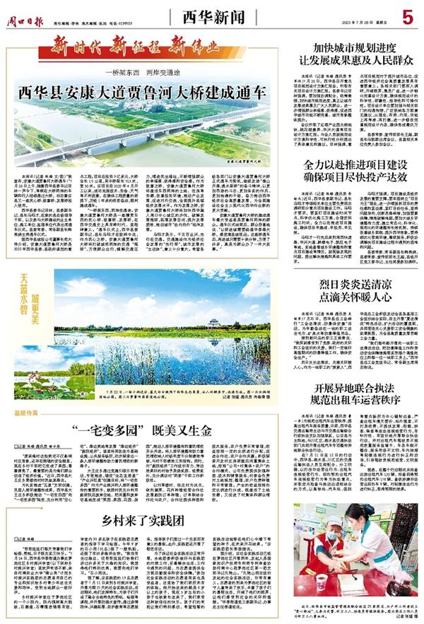 本报讯(记者 张猛 文/图)“我宣布,安康大道贾鲁河大桥通车!”7月26日上午,随着西华县委书记田林一声令下,等候在大桥两岸的车辆和行人陆续通过大桥,标志着该县又一座民心桥、致富桥、发展桥投入使用。