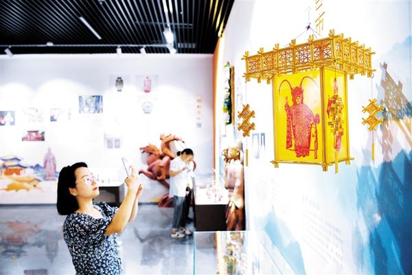 7月28日,参观者在“燕赵神韵——河北省民间文艺精品展”上拍照。