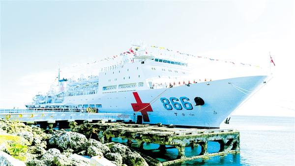 2022年1月,汤加遭受火山喷发自然灾害。中国海军派舰艇编队运送1400余吨救灾物资驰援汤加。“和平方舟”号医院船曾于2014年、2018年成功访问汤加,为当地提供医疗服务近万人次。