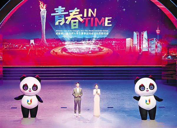 当晚,“青春 In Time”第31届世界大学生夏季运动会运动员联欢会在成都大运村艺术中心大剧场举办。联欢会以魔术、舞蹈、演唱等艺术形式为桥梁,推动中外青年艺术家、运动员、大学生及志愿者代表互动交流,营造欢乐、友爱的大运氛围。新华社记者 蔡湘鑫 摄