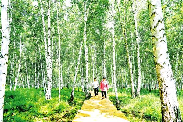 夏日时节,内蒙古自治区呼伦贝尔市牙克石市凤凰山景区草木葱茏,景色宜人,吸引游客前来游玩。