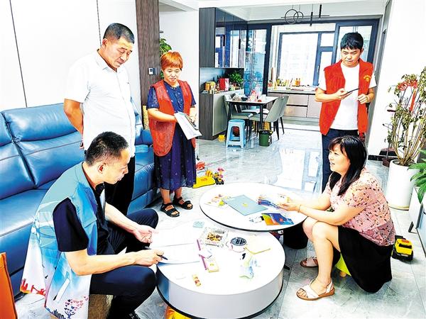 在居民刘如意家中,前来开展入户大走访活动的田春霞身着“红马甲”和身着“蓝马甲”的道德文明使者张彩虹坐在客厅的茶几旁,介绍“创文”的意义和好处,并在入户走访记录本上详细记录刘如意提出的意见建议,真正将群众的呼声听在耳中、落在纸上。“红蓝组合”走出刘如意家门时顺手递给他一张小卡片,正面详细写着网格员的姓名、联系电话、分包楼栋等信息,下方用黑体字加粗的一行话“我们是邻居,有困难就找我”格外醒目,卡片背面印着社区办公电话、网格员职责等内容。“这张小卡片关键时候能起到很大的作用,这都是‘创文’带给我们的好处。邻里关系更和谐、社区环境更整洁,老百姓的日子越过越红火。”刘如意说。