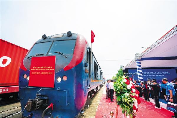 这是抵达越南河内安员车站的首列“燕赵号”中越班列(8月2日摄)。 从中国河北省石家庄市始发的首列“燕赵号”中越班列当地时间2日10点30分抵达越南河内安员车站,标志着这一运输线路顺利连通。 新华社记者 胡佳丽 摄