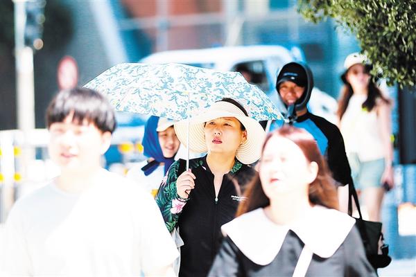 8月3日,市民顶着烈日走在韩国釜山街头。 连日来,韩国多地最高温度超过38摄氏度。韩国行政安全部1日将该国高温预警上调至最高级别,这是近四年来头一次。 新华社记者 王益亮 摄
