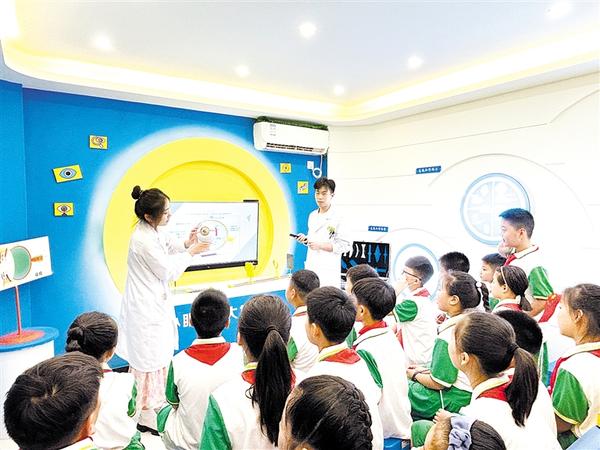 为进一步增强全市青少年自护意识和能力,培养青少年爱眼护眼的良好习惯和视力防控意识,8月2日,共青团周口市委联合市眼科医院开展“青春自护 ‘豫’你同行”青春(红领巾)寻访活动。图为五一路小学的少先队员们在市青少年近视科普基地参观。②18 刘伟 摄
