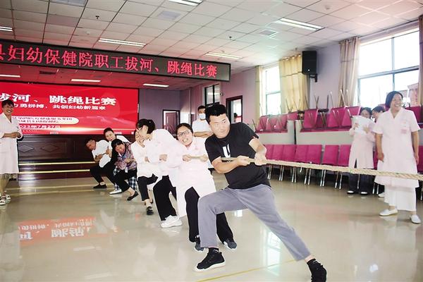 本报讯 (记者 徐松 通讯员 刘珂言 王鸿飞 文/图) 为丰富医院职工文化生活,增强职工身体素质,7月27日下午,郸城县妇幼保健院举办职工拔河、跳绳比赛(如图)。该院院长亢国良等领导班子成员同职工一起参加比赛。此次比赛由院工会精心组织,来自妇产科、儿科、医技、行政后勤等科室的100余名职工参加。