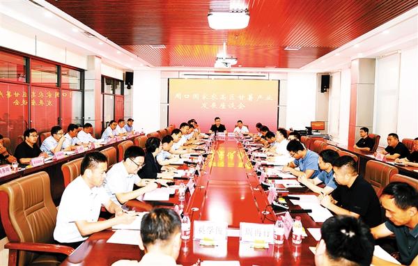 本报讯(记者 徐松 通讯员 刘珂言 文/图)8月2日,周口国家农高区甘薯产业发展座谈会召开,国家甘薯产业技术体系首席科学家李强,县领导李全林、董鸿、宋一兵、韩卫东、张福丽、孙怀远等出席会议。