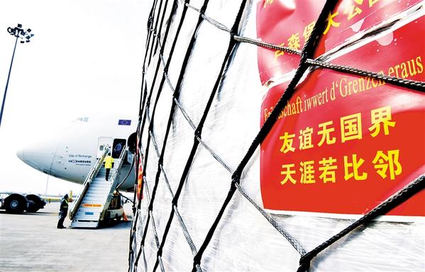 疫情期间,郑州-卢森堡航线不但不停飞、不断航,还增加了航班,为中欧间特殊物资运输提供支持。在此期间,印有“友谊无国界、天涯若比邻”寄语的50万只医用外科口罩和4500件医用防护服等防疫物资从郑州搭载全货机飞抵卢森堡。