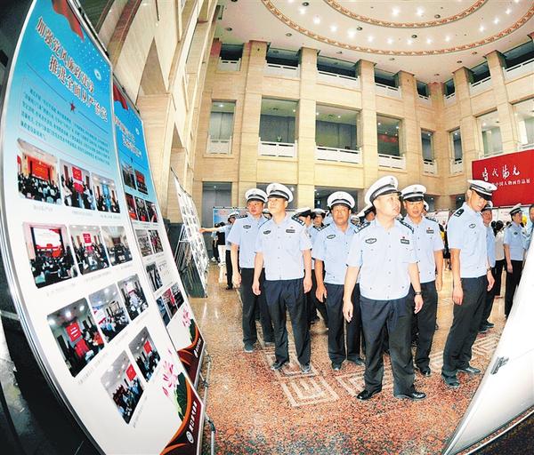 连日来,我市清廉机关建设成果展在市博物馆开展,市直机关纷纷组织党员干部前往参观学习,作为加强党员日常教育的重要内容。图为8月8日,周口高速交警支队党员、民辅警到市博物馆参观学习悟精髓。